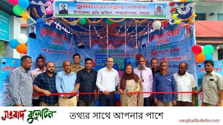 বগুড়ার শাজাহানপুরে “স্মার্ট ভূমিসেবা, স্মার্ট নাগরিক” এই প্রতিপাদ্যে সামনে রেখে ভূমি সেবা সপ্তাহের উদ্বোধন করা হয়েছে।
