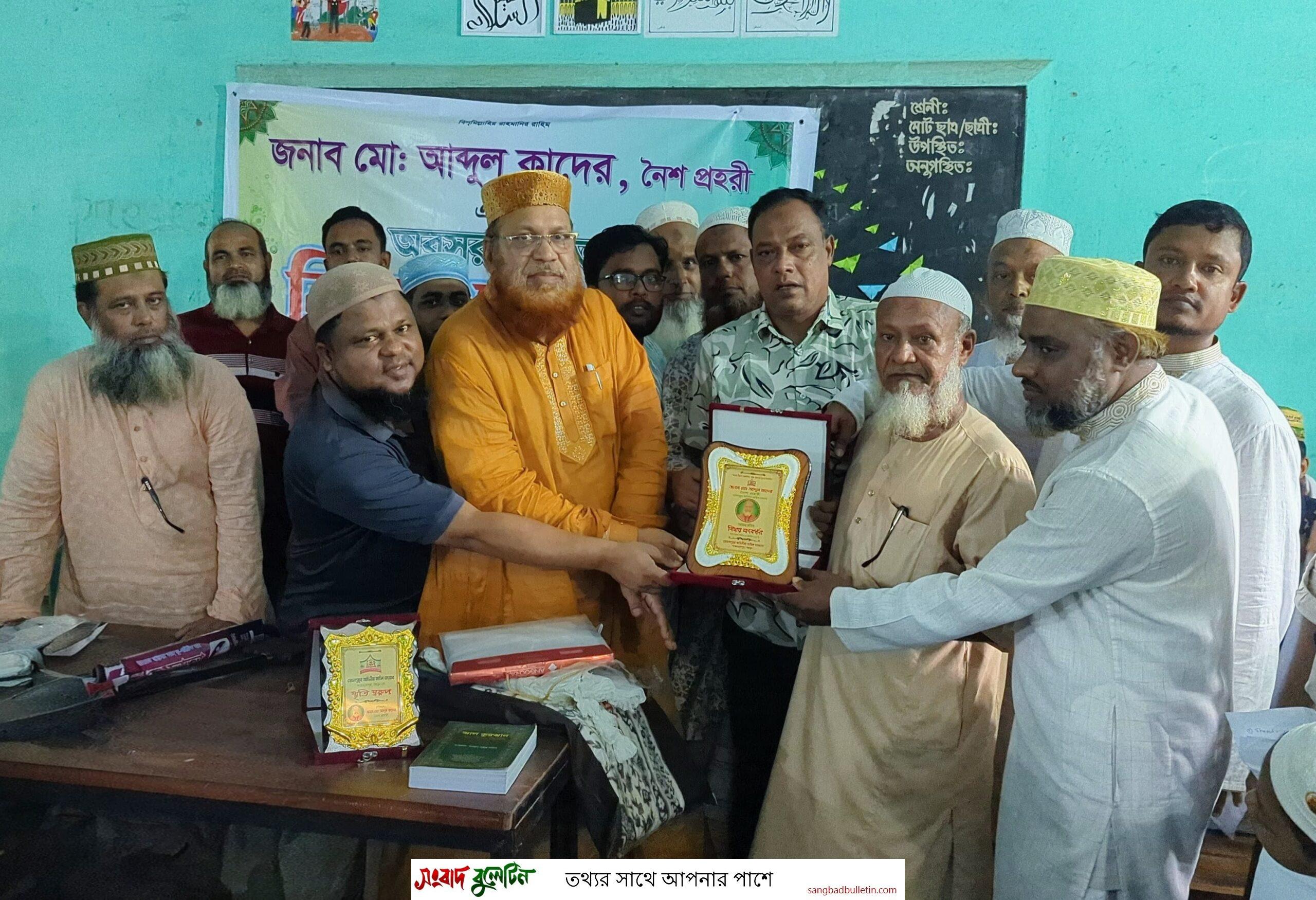 অনুষ্ঠানে আব্দুল কাদেরকে মাদ্রাসার পক্ষ থেকে সম্মাননা স্মারক তুলে দেওয়া হয়। পাশাপাশি শিক্ষক-শিক্ষার্থী ও সহকর্মীরা তাকে বিভিন্ন উপহার সামগ্রী প্রদান করেন।
