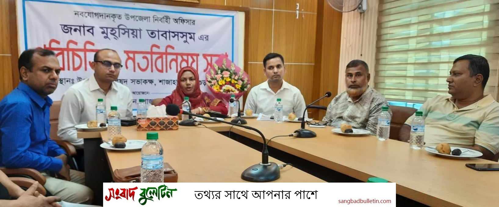 বগুড়ার শাজাহানপুরে কর্মরত সাংবাদিকদের সাথে পরিচিতি ও মতবিনিময় করেছেন নবাগত উপজেলা নির্বাহী অফিসার (ইউএনও) মুহসিয়া তাবাসসুম ।